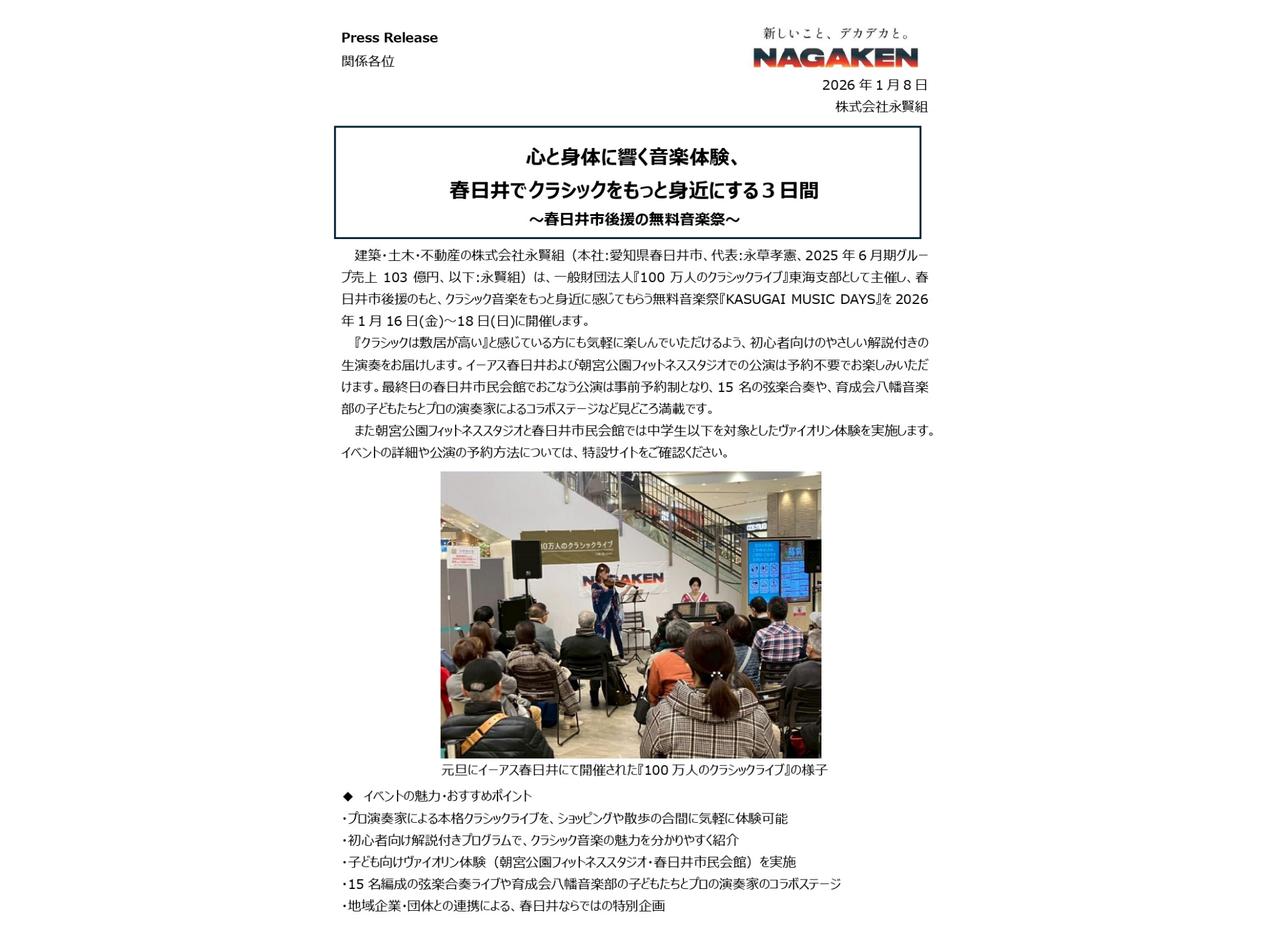 NAGAKENからのお知らせや最新の取り組み、地域との連携活動などを随時お届けします。 まちづくりの今と、私たちの歩みをぜひご覧ください。
