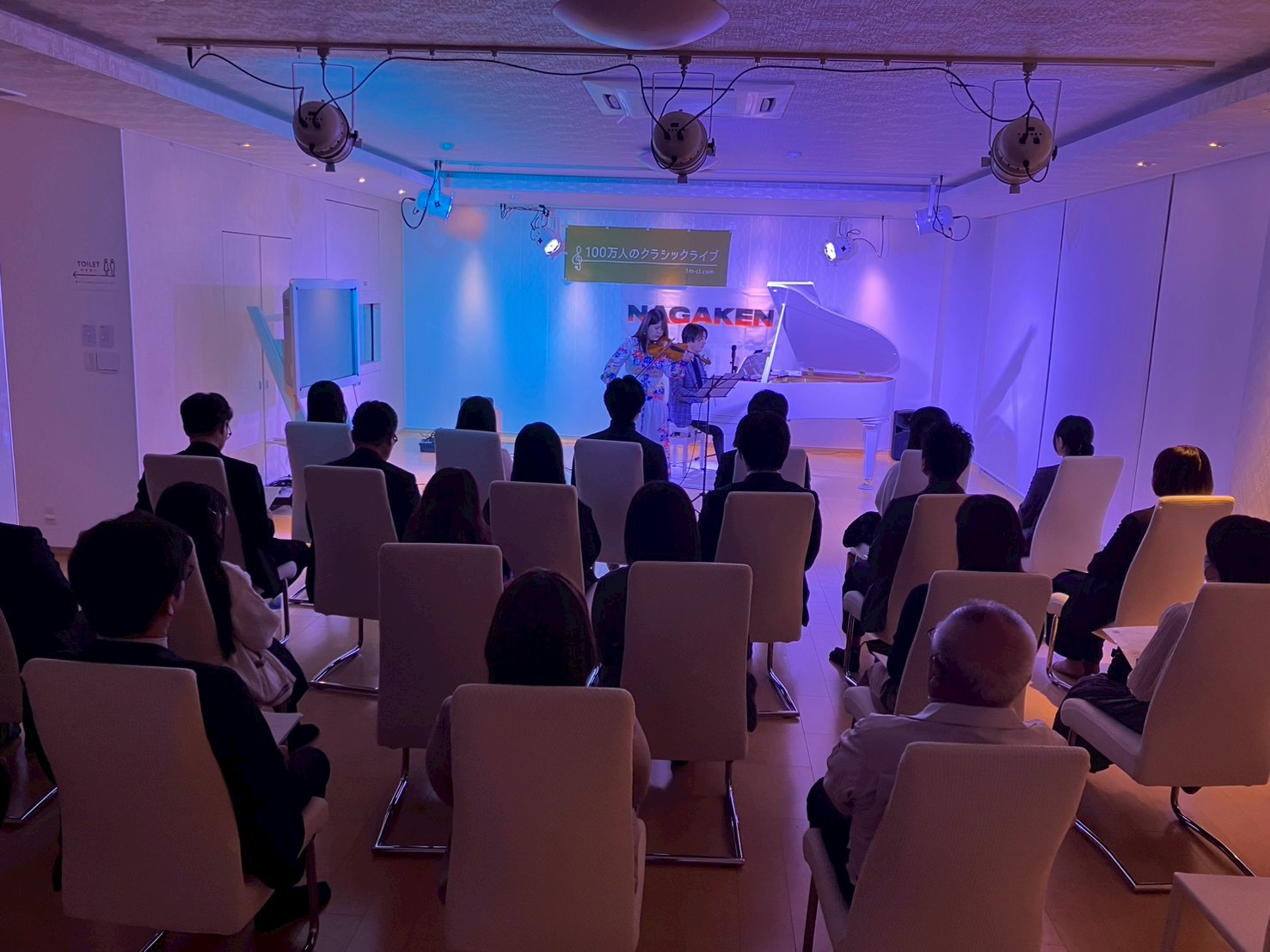 こちらのホールではNAGAKENグループのお客様や関係者の方々を招いてクラシックライブの本来の魅力である至近距離でのライブを体感していただくため、2024年11月から開催しています。
