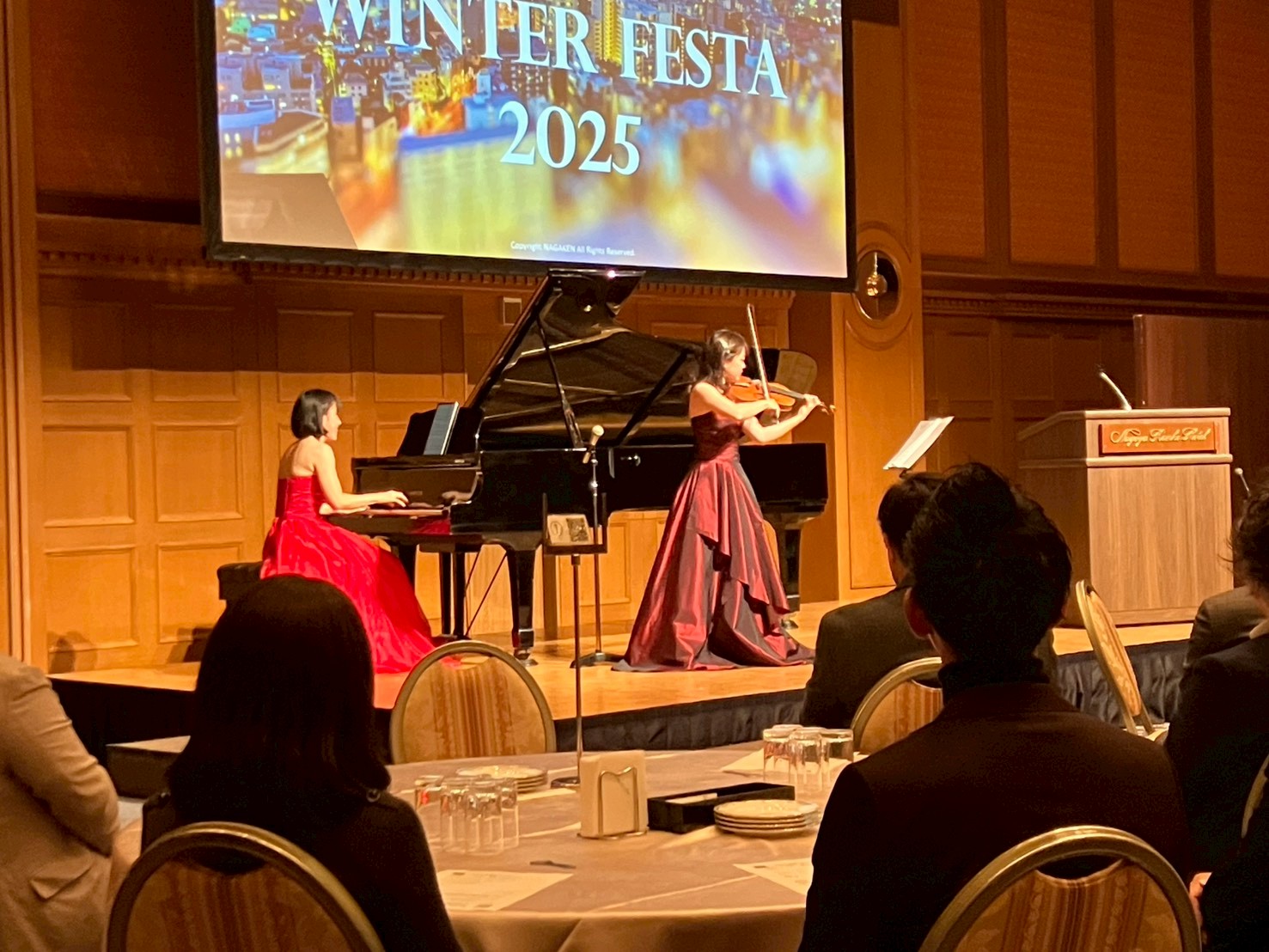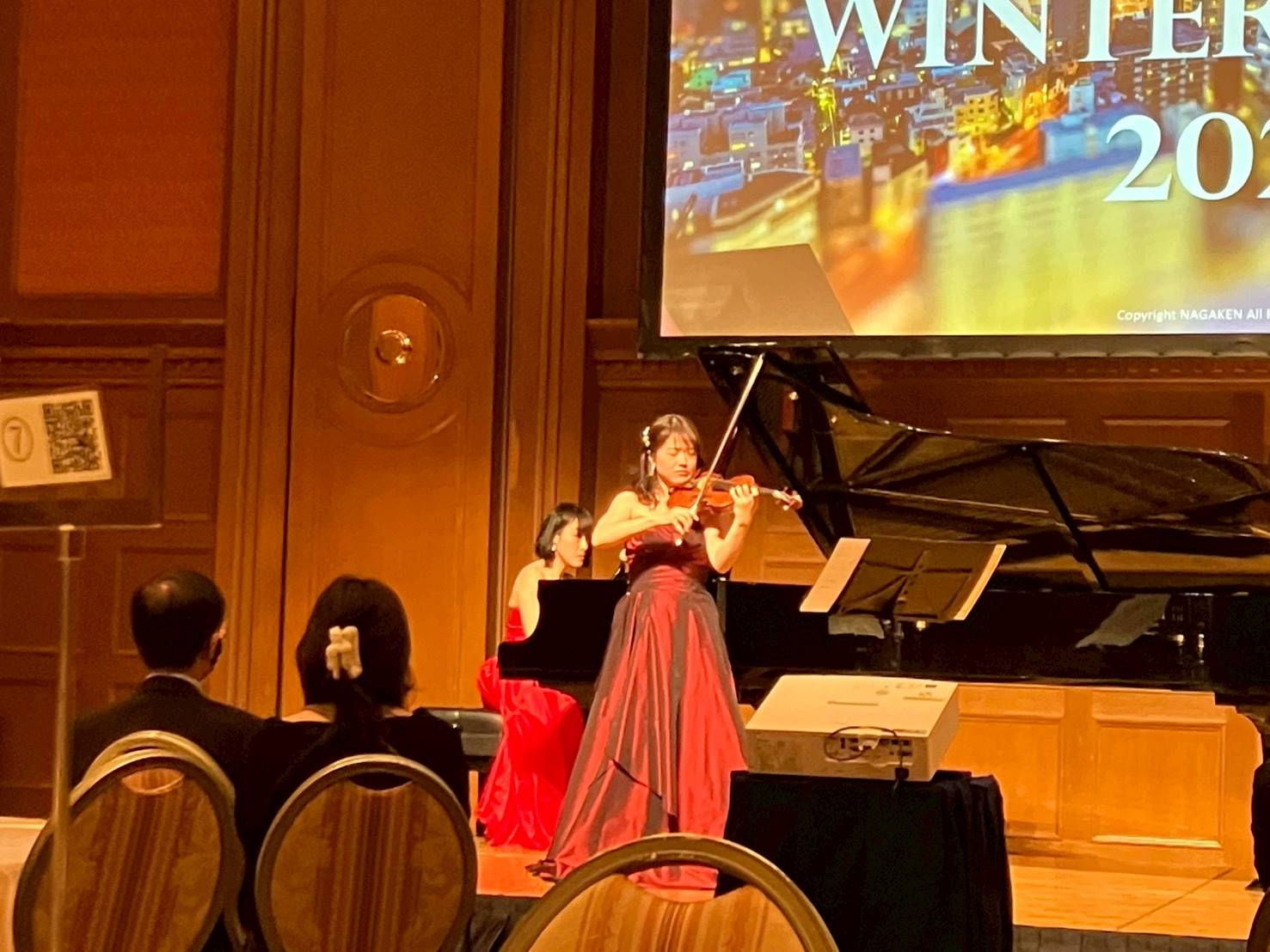 当日は「NAGAKEN Winter Festa 2025」と銘打ち、グループ社員が一堂に会する場にて、弊社代表永草よりこの活動の目的や、今後の展望等の話があり、その後クラシックライブを開催。