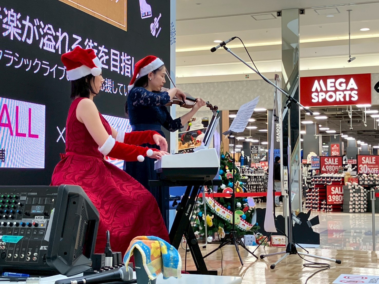 ヴァイオリン家本くららさん、ピアノ伊藤明日香さんが出演し、クリスマスシーズンに合わせたプログラムを披露しました。
