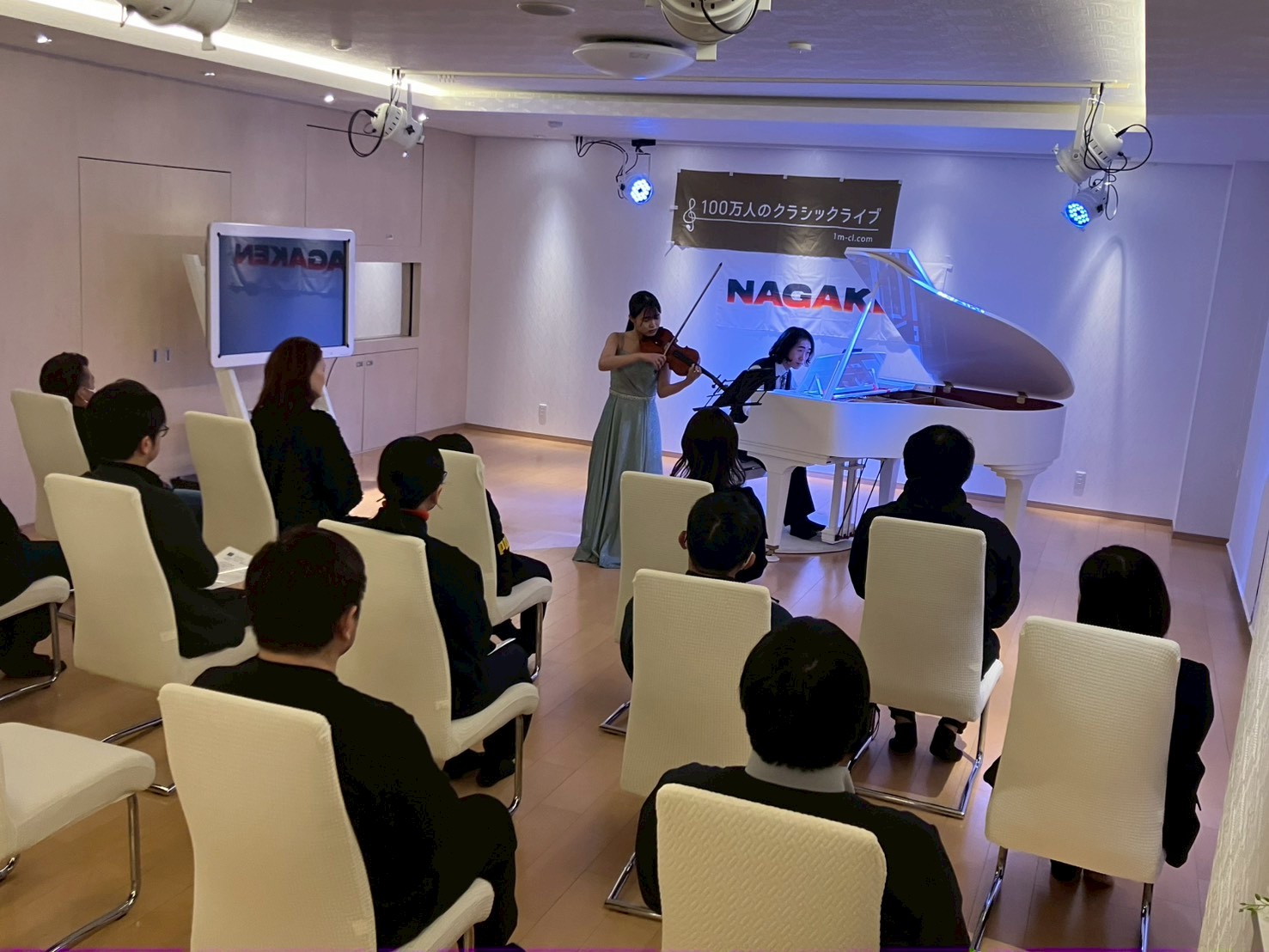 このホールでは、クラシックライブ本来の魅力である“至近距離での生演奏”をお楽しみいただくため、NAGAKENグループのお客様や関係者の皆さまをお招きし、2024年11月より継続して開催しています。